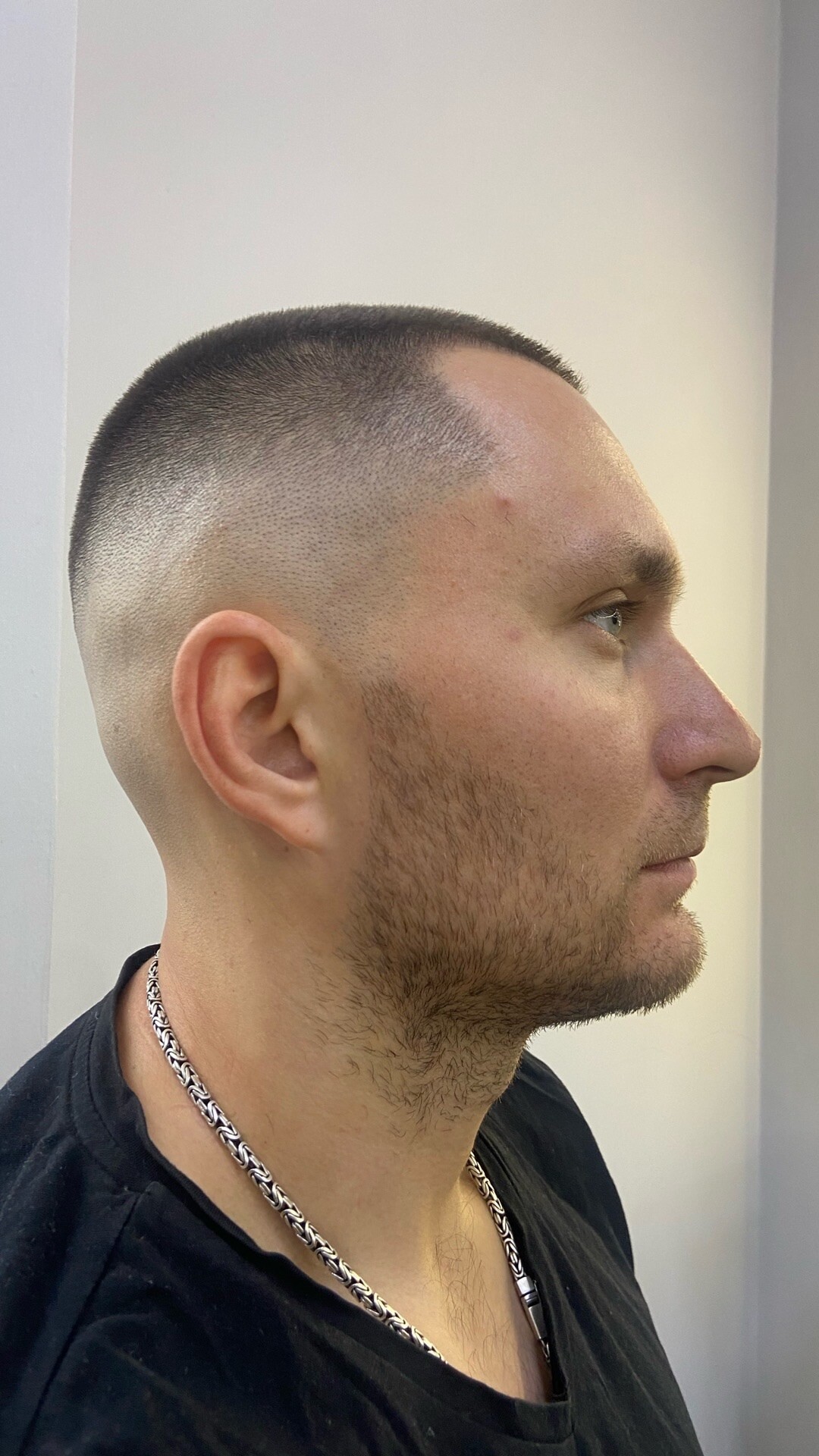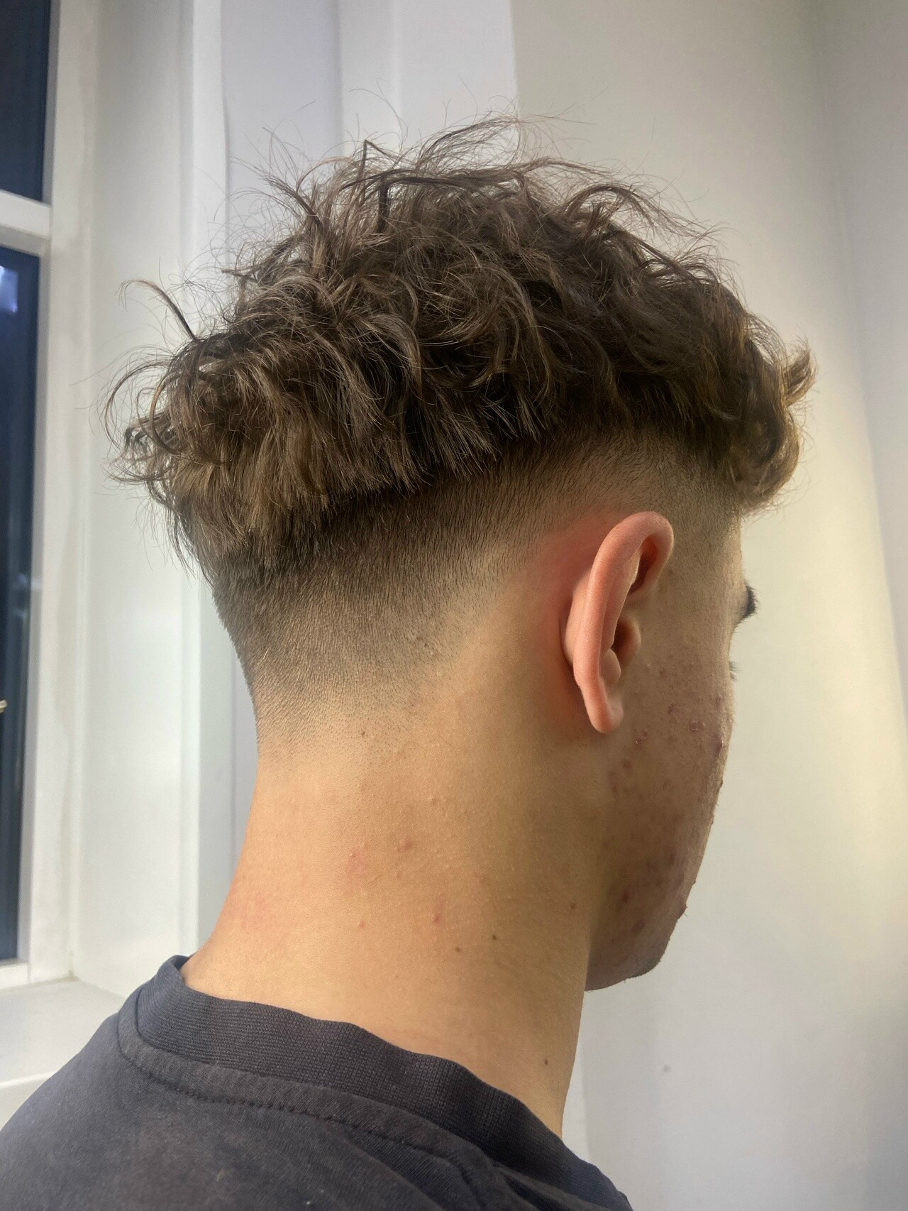 High Fade (Высокий фейд). Что это: Переход начинается выше — на уровне лба или чуть ниже макушки.