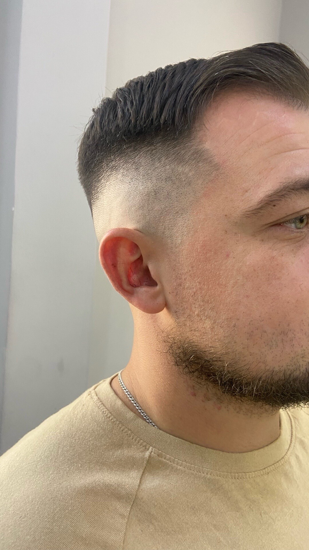 Taper Fade (Плавный фейд на висках и затылке). Что это: Минималистичный вариант - переход делается только в области висков и у основания затылка.